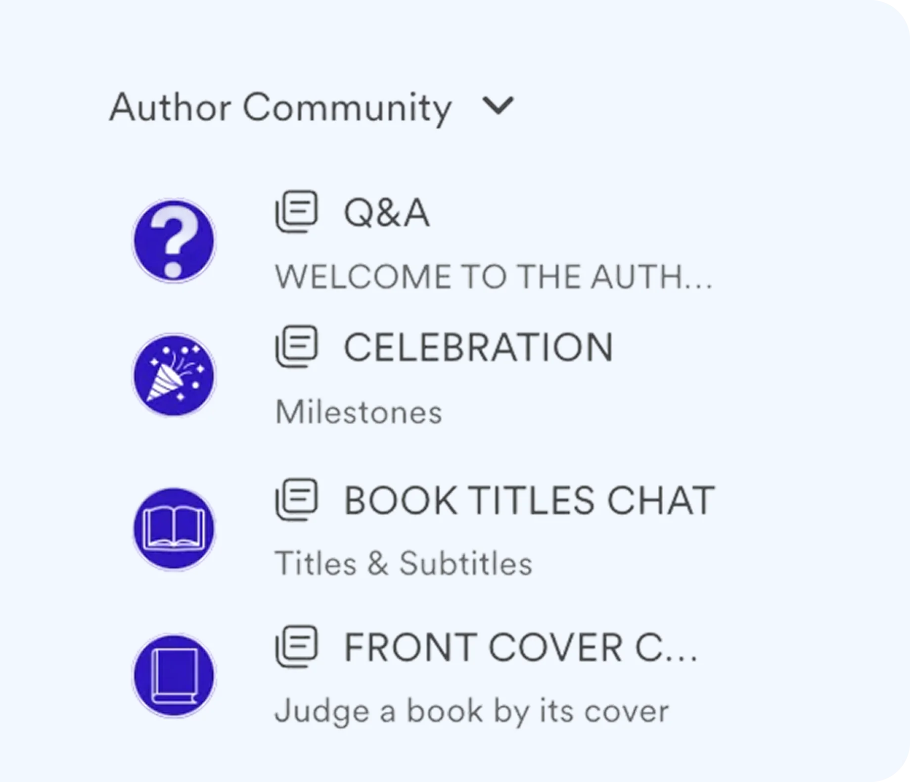 Connect with fellow authors on a similar journey, share book covers, exchange ideas, provide support, and celebrate each other's milestones throughout your authorship journey. Have a question? Just post it inside the author community and a team member will answer your question.
